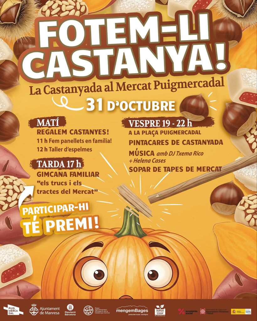 Aquest divendres esperem la vostra participació per celebrar la Castanyada conjuntament amb una jornada plena d’activitats al Mercat Puigmercadal. Des de Supercoop Manresa col·laborem en l’organització de Fotem-li Castanya per reivindicar les tradicions i la cultura de la Castanyada. Podeu venir amb la família, la canalla i els amics, que nens i nenes no tindran […]