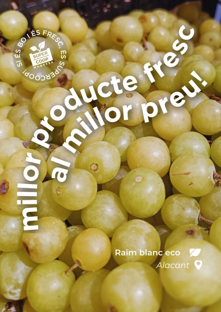 Alacant és terra de raïm i a la botiga en tenim de blanc i de negre. Trobareu les varietats ecològiques de blanc i de negre (red globe) a la zona de la fruita. Aprofiteu ara que és temporada i gaudiu amb un dels grans productes de tardor, dolç i boníssim!
